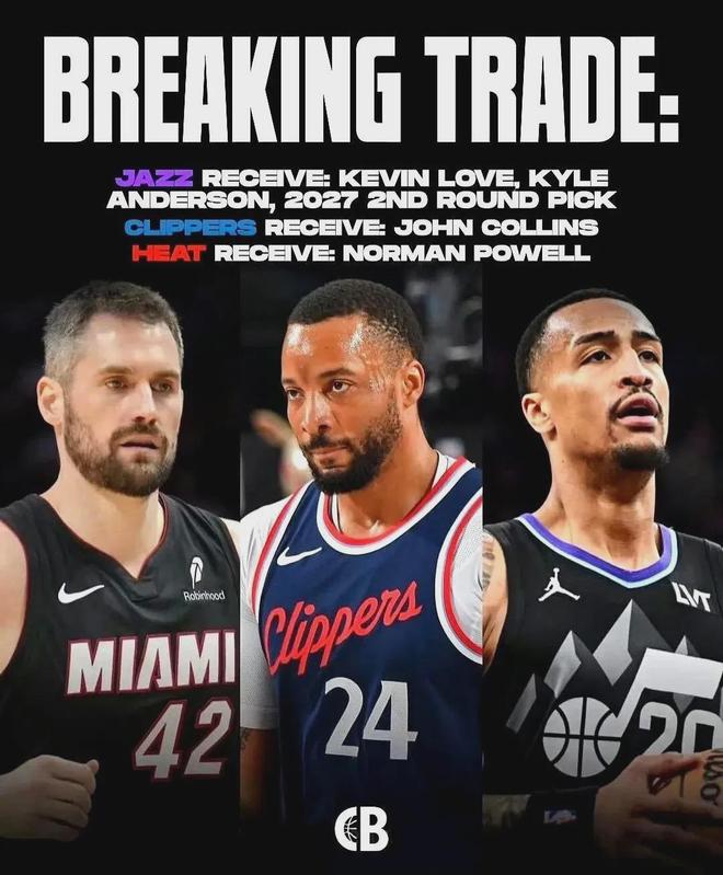 今夏休赛期,NBA达成了一笔3方交易,即快船得到科林斯、热火得到鲍威尔,以及爵士得到乐福+李凯尔+一个27年次轮签。