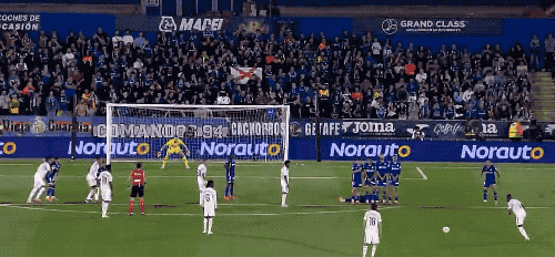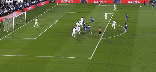 上半场补时阶段,阿拉巴主罚任意球,皮球划出不规则的弧线,门将奋力将球扑出,巴尔韦德跟上的补射出了边线。