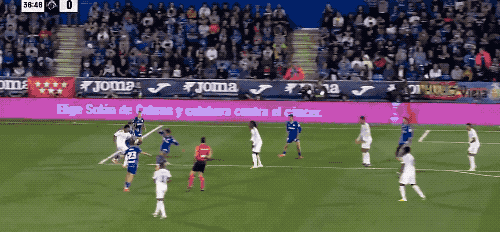 第39分钟,赫塔费的任意球被解围,桑克里斯不停球直接起脚怒射,皮球差之毫厘。